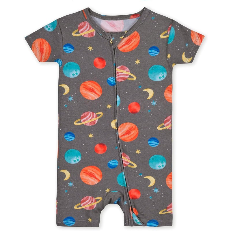 Gerber Unisex Baby Buttery Soft Short Sleeve Romper with Viscose Made from Eucalyptus(Outer Space)