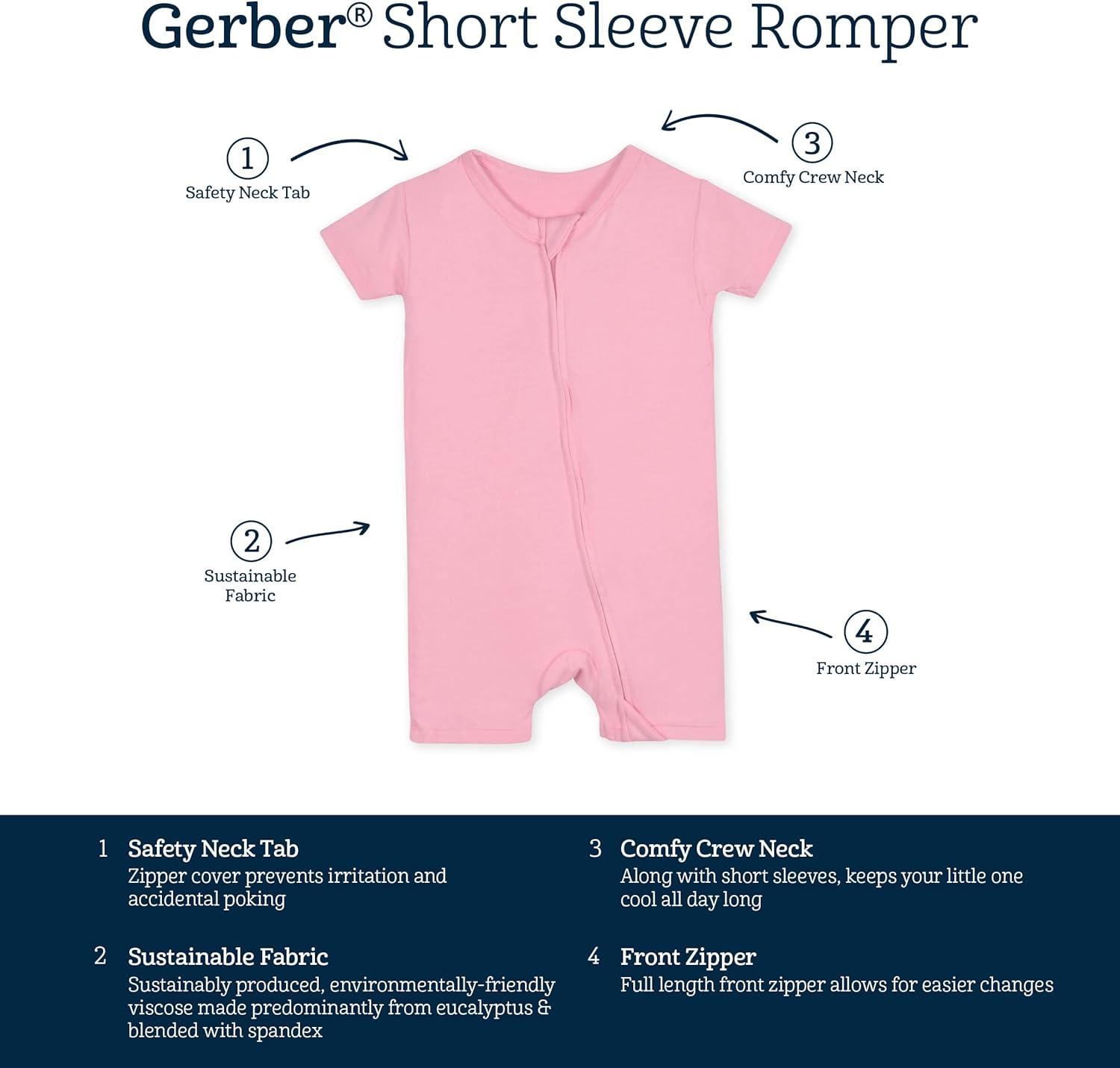 Gerber Unisex Baby Buttery Soft Short Sleeve Romper with Viscose Made from Eucalyptus(Pink Lemonade)