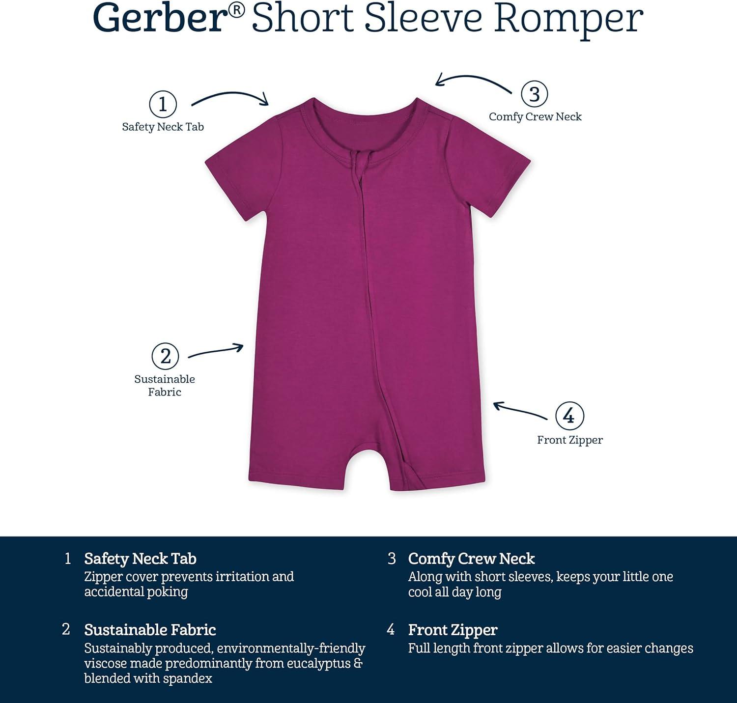 Gerber Unisex Baby Buttery Soft Short Sleeve Romper with Viscose Made from Eucalyptus(Raspberry)