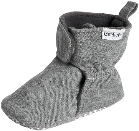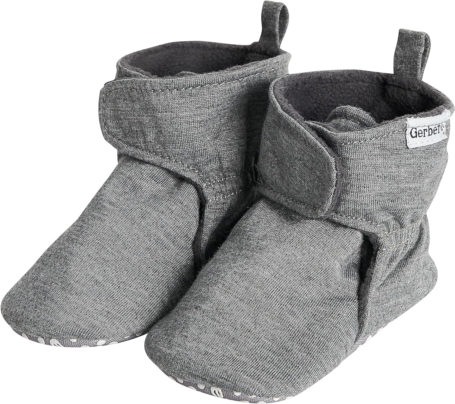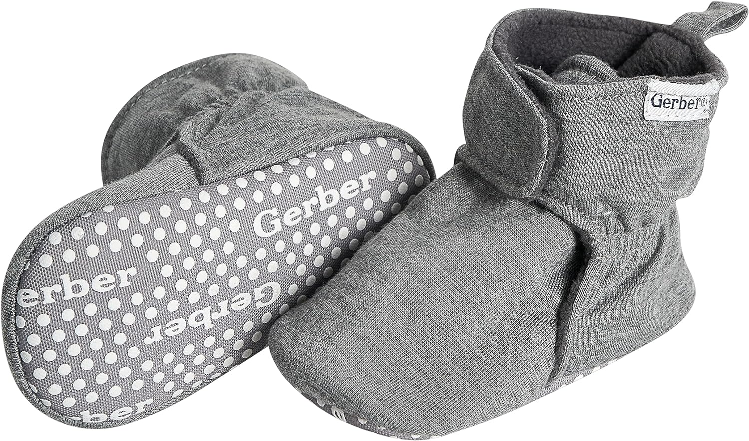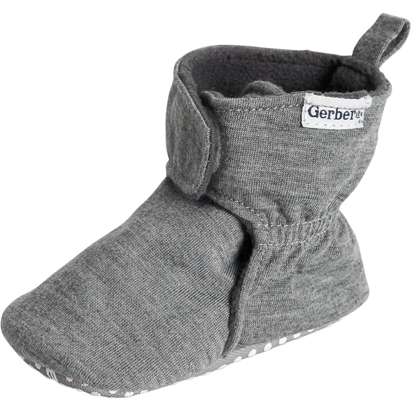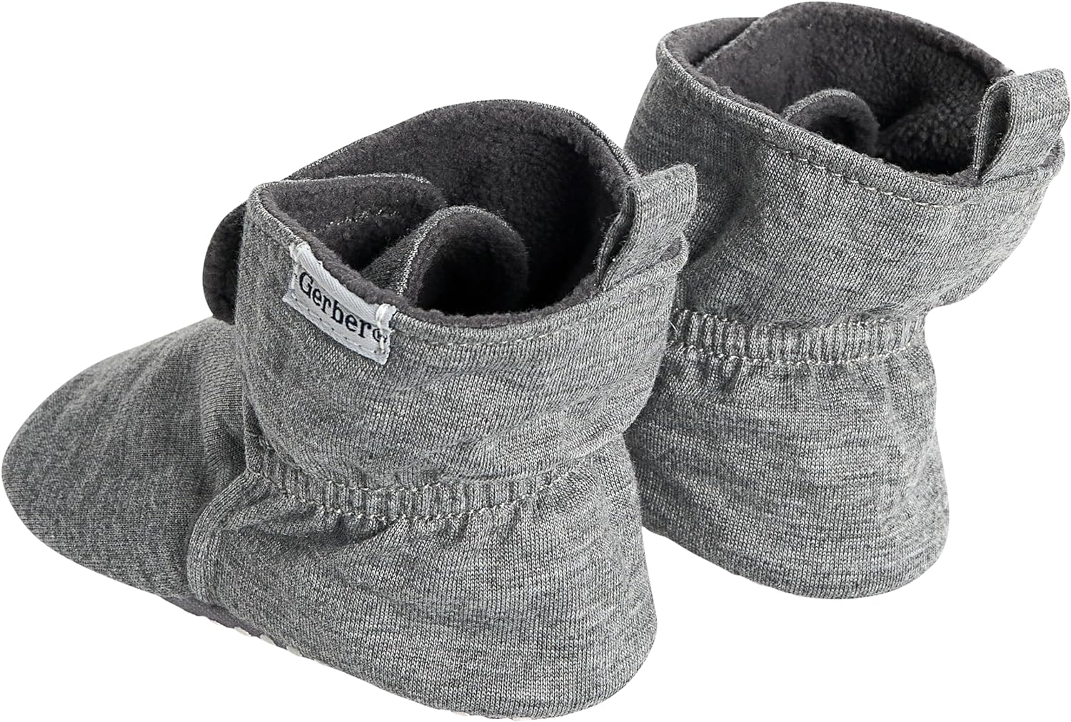 Gerber Unisex-Baby Fleece Lined Wrap Fasten Non Skid Soft Slipper Booties(Grey Heather)