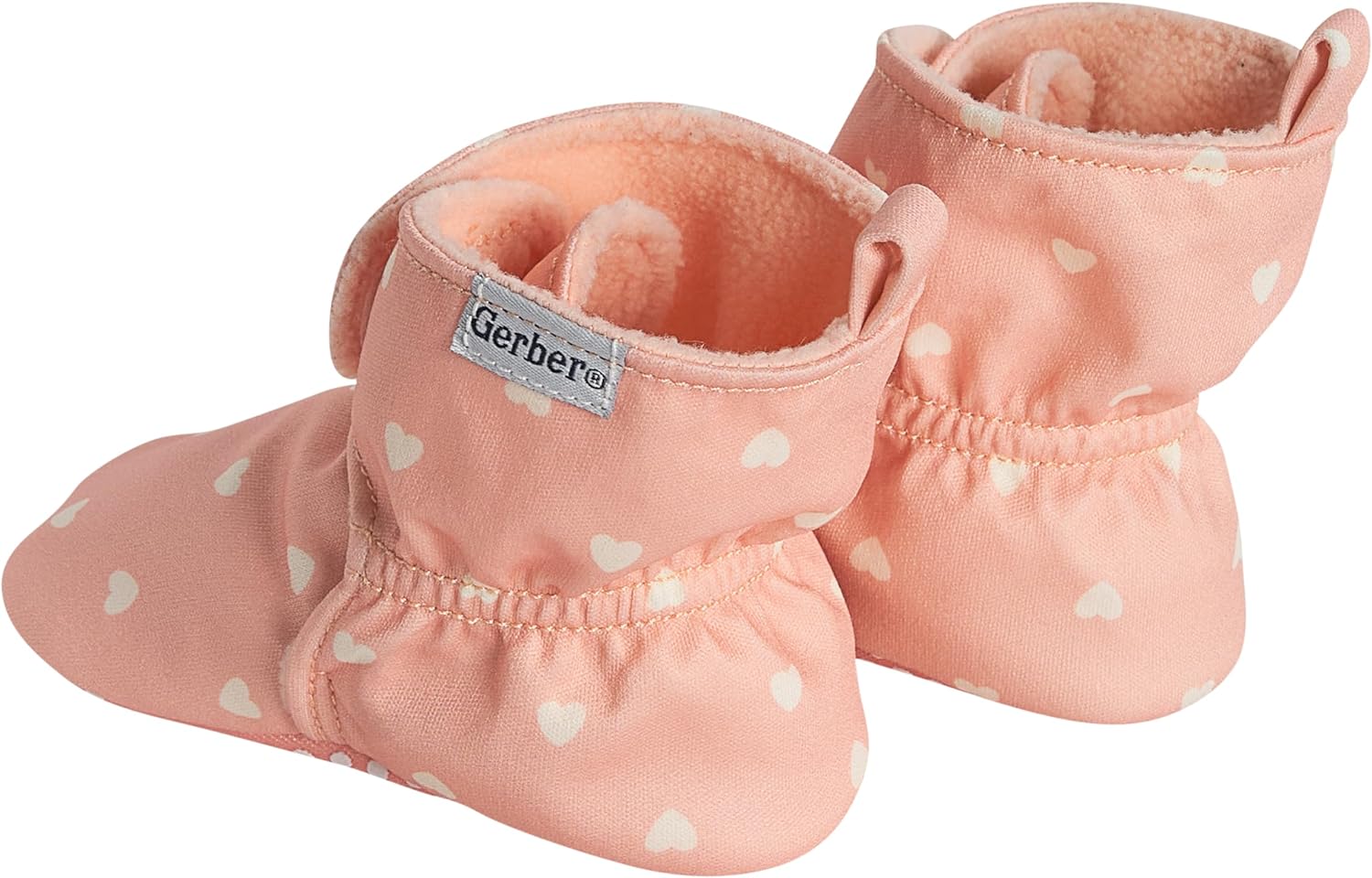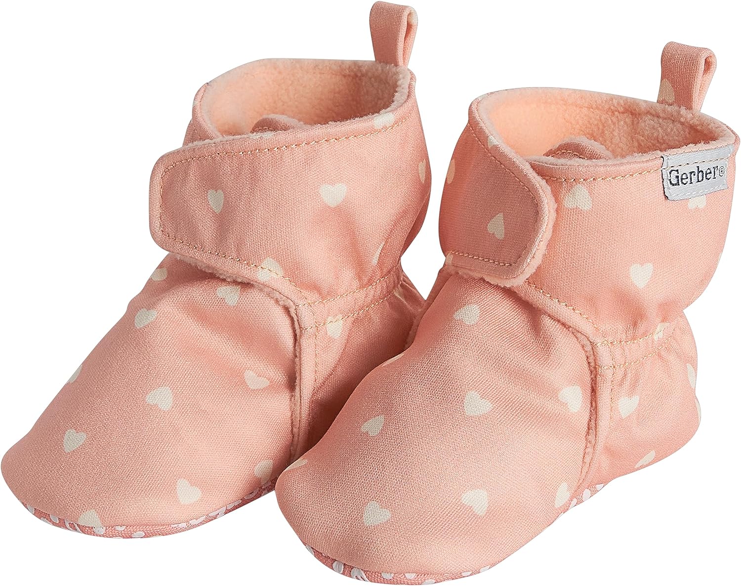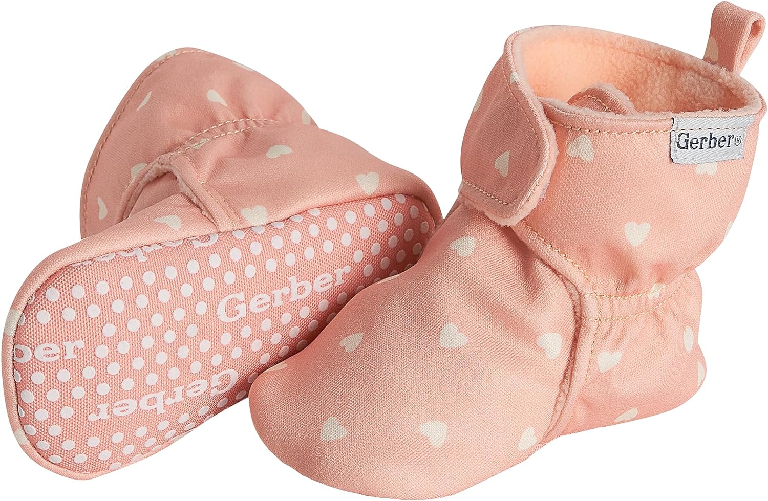 Gerber Unisex-Baby Fleece Lined Wrap Fasten Non Skid Soft Slipper Booties(Pink Heart)