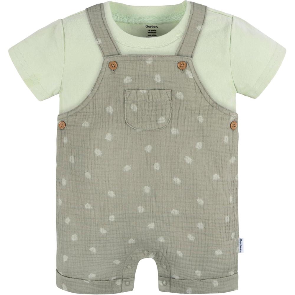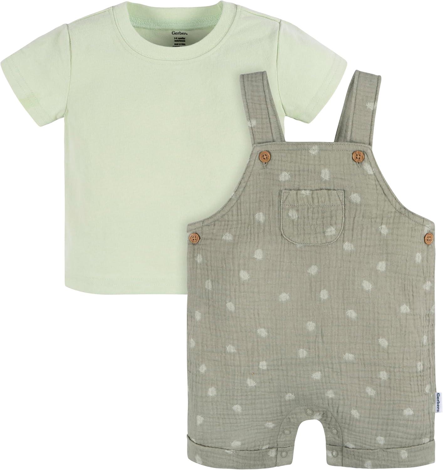 Gerber Unisex Baby Gauze Overall Romper and T-Shirt Set(Green Palms)