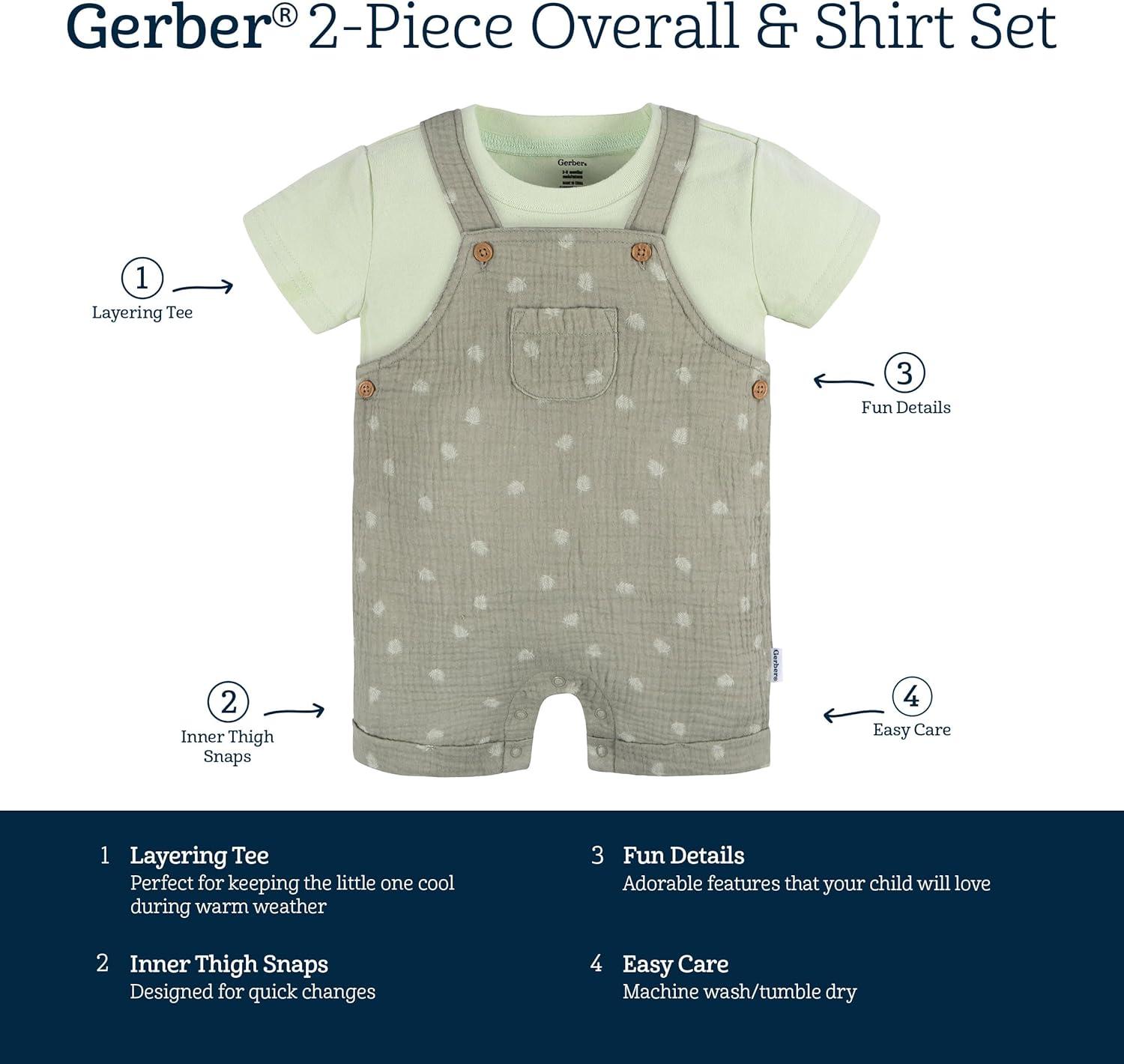 Gerber Unisex Baby Gauze Overall Romper and T-Shirt Set(Brown Dots)