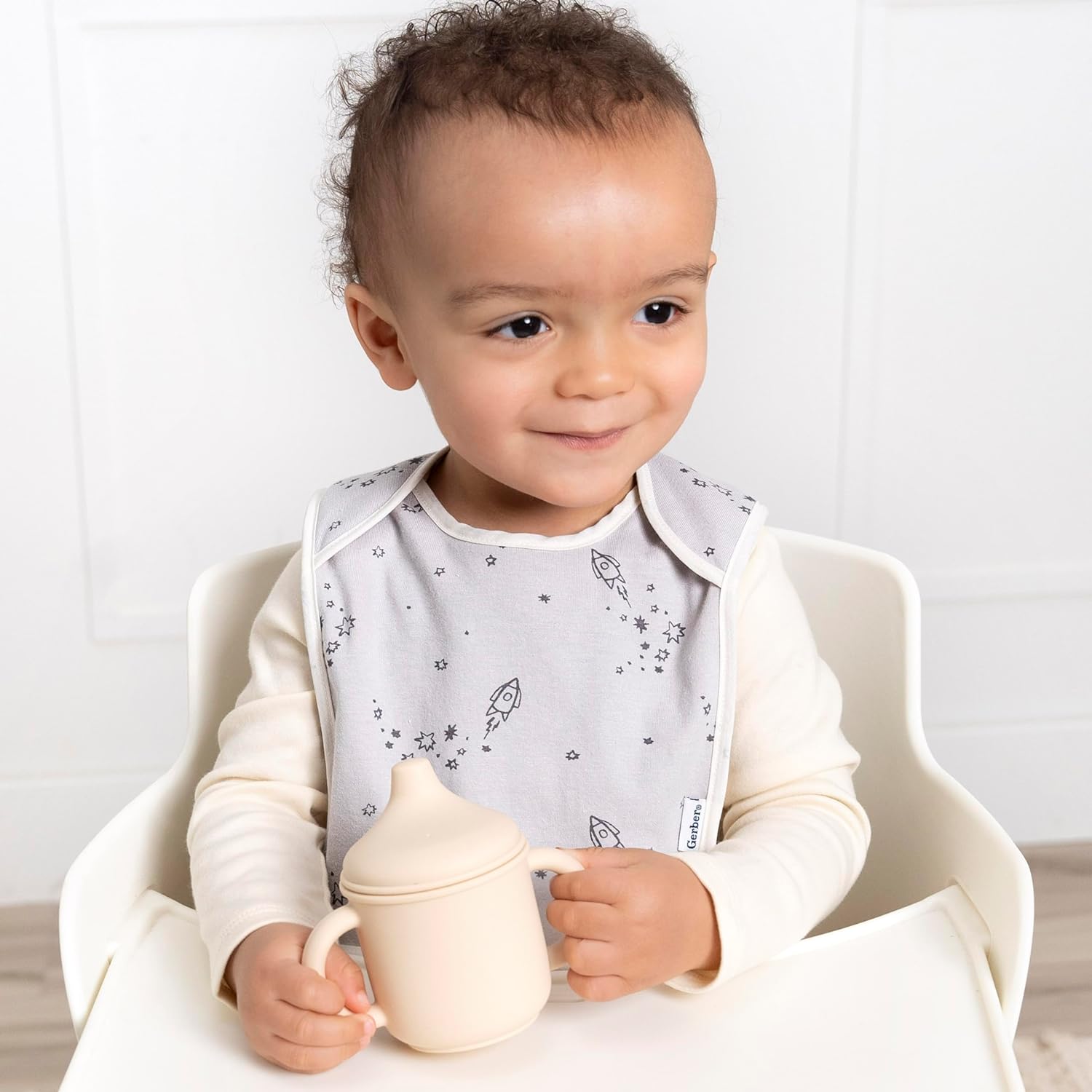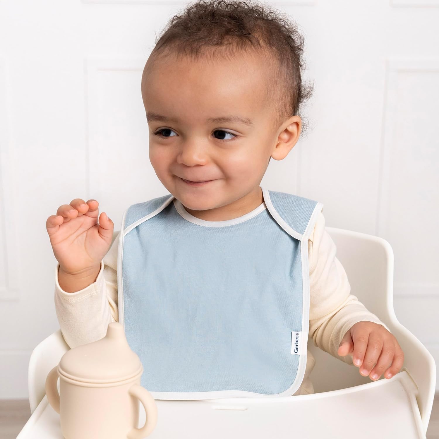 Keep your baby boy clean and looking sharp during mealtime adventures. Our baby bibs are designed with parents and babies in mind and feature an easy pull-on design and expandable lap shoulder neckline for an easy, comfortable fit. This convenient eight-pack includes a delightful assortment of solid colors and charming patterns, injecting variety and fun into your daily routine. After-meal cleanup is easy – just pop the baby bibs into the washing machine and dryer, to have them clean and ready for the next meal.