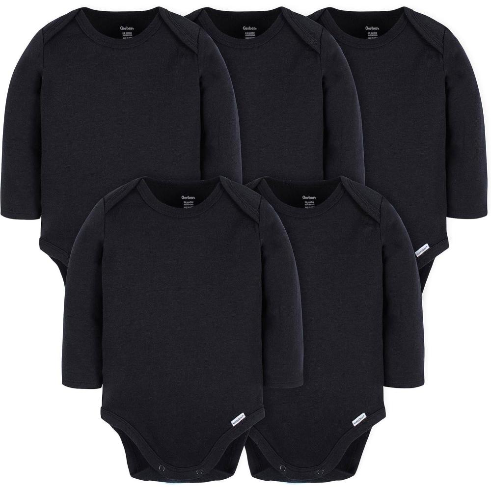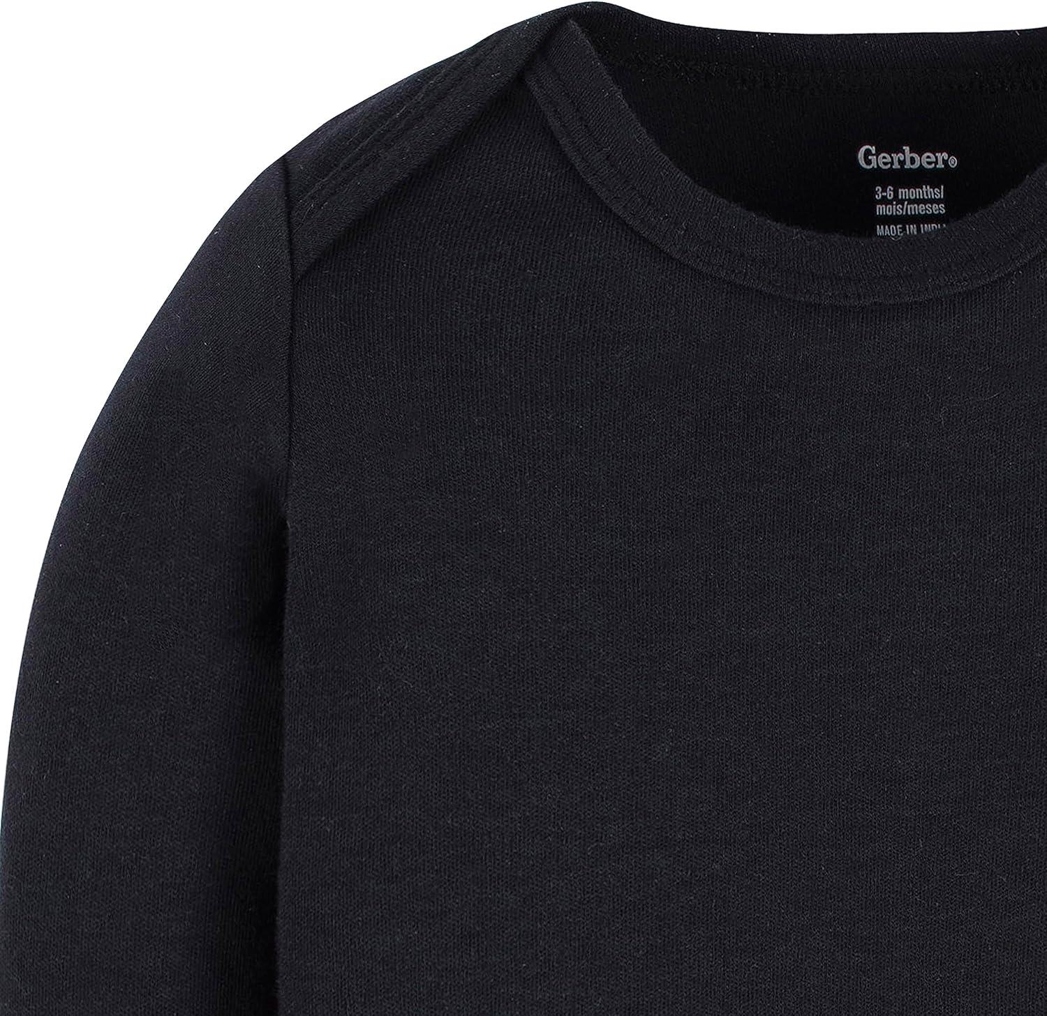 Gerber Unisex Baby Long Sleeve Solid Onesies Multi-pack Interlock 180 Gsm(Black)