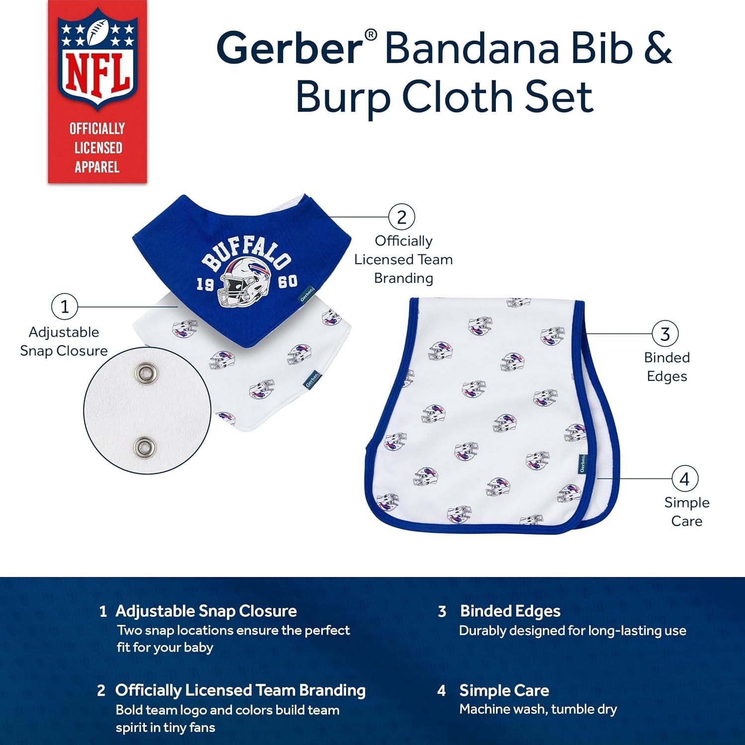 Gerber Unisex Baby Nfl Team Bandana Bibs and Burp Cloth Set(Bills)