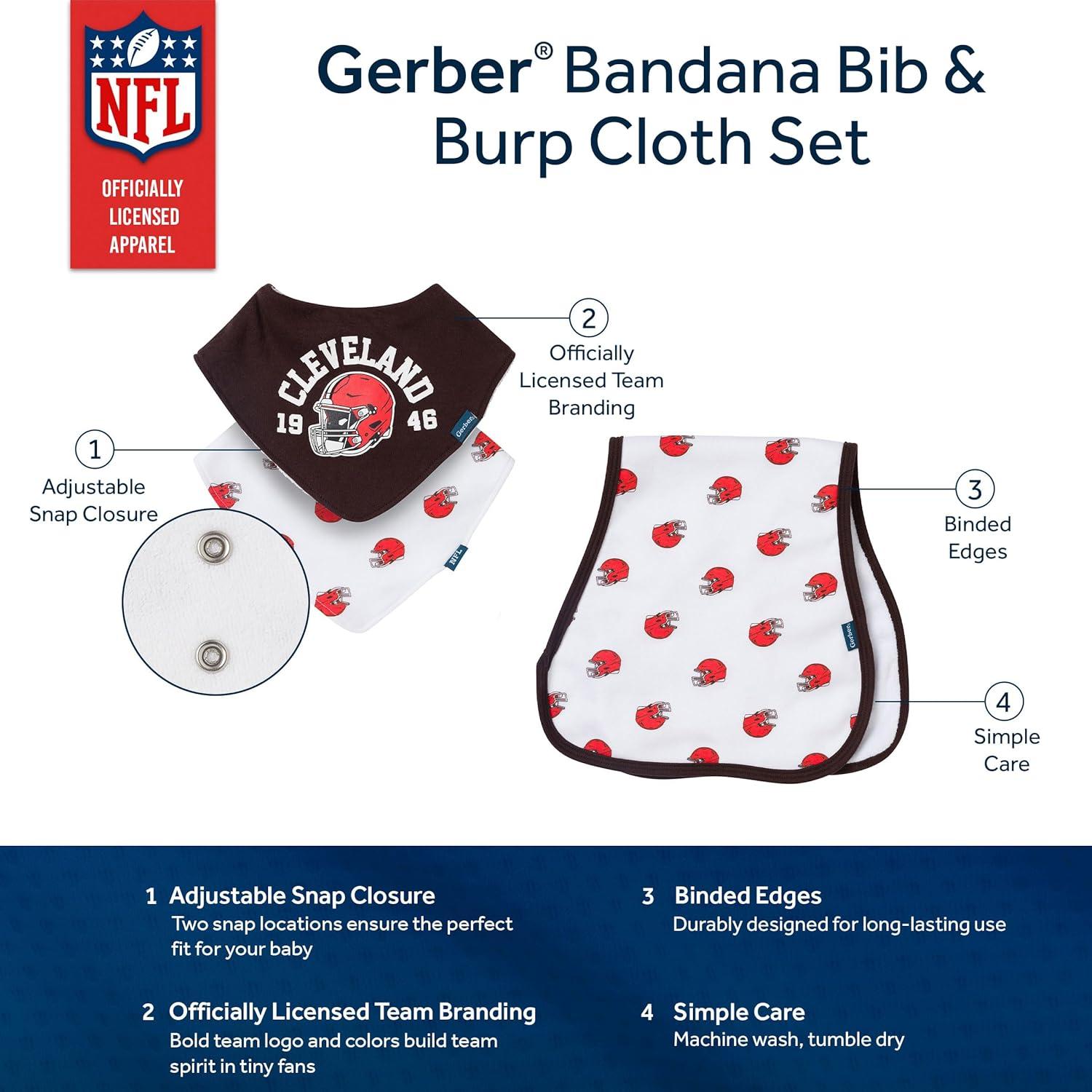 Gerber Unisex Baby Nfl Team Bandana Bibs and Burp Cloth Set(Browns)