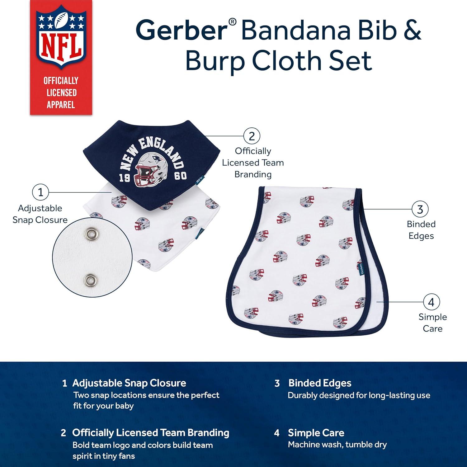 Gerber Unisex Baby Nfl Team Bandana Bibs and Burp Cloth Set(Patriots)