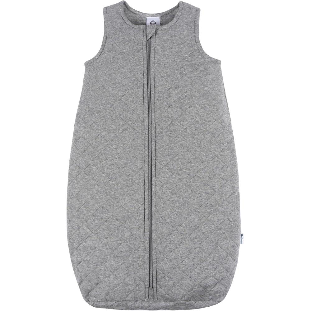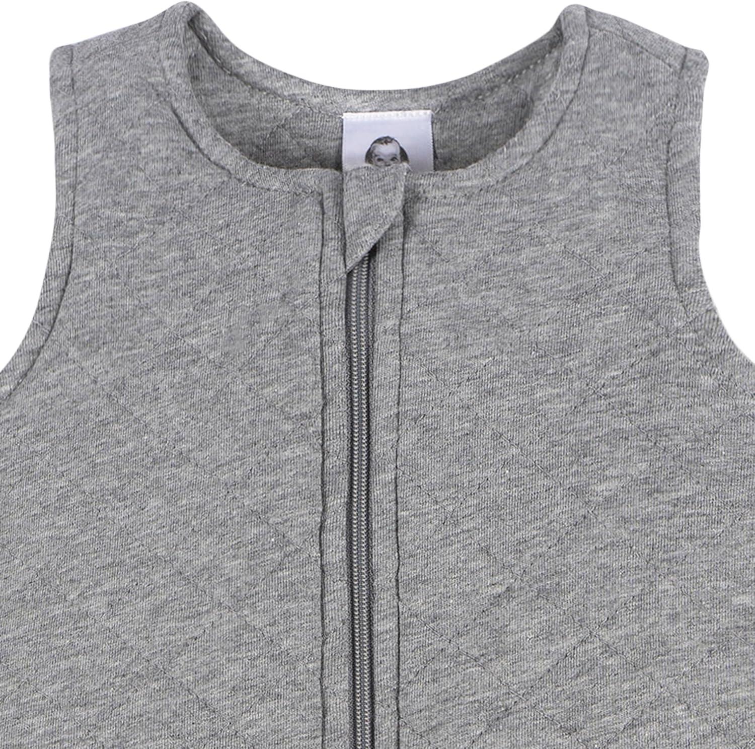 Gerber Unisex Baby Quilted Wearable Blanket, Cotton Blend, Oeko-tex Certified, 2-way Zipper, Safe Sleep Solution(Grey Heather)