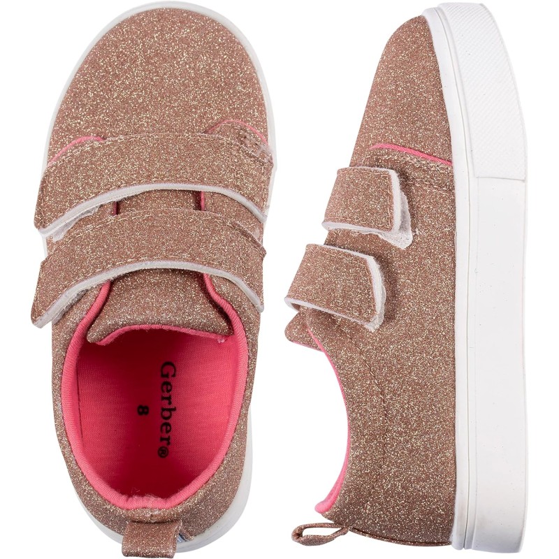 Gerber Unisex-Baby Sneakers Crib Shoes Newborn Infant Toddler Neutral Boy Girl(Rose Gold Glitter)