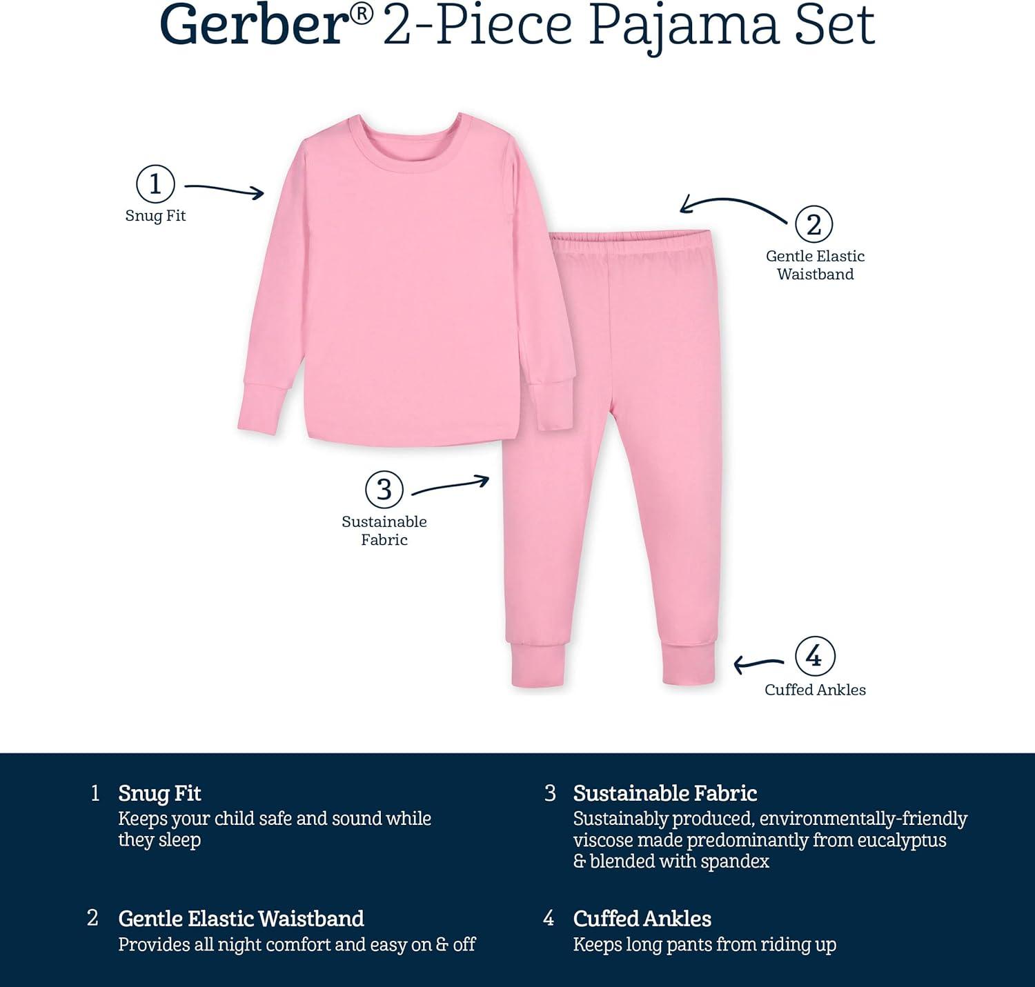 Gerber Unisex Baby Toddler Buttery Soft 2-Piece Snug Fit Pajamas with Viscose Made from Eucalyptus(Pink Lemonade)
