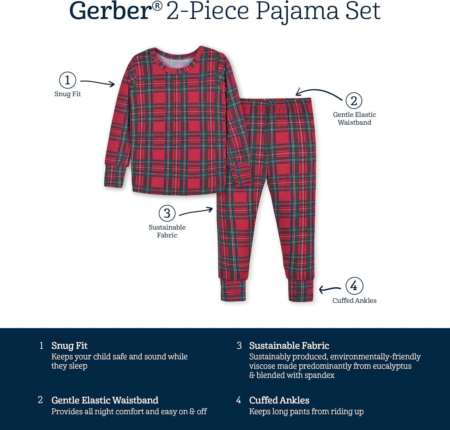 Gerber Unisex Baby Toddler Buttery Soft 2-Piece Snug Fit Pajamas with Viscose Made from Eucalyptus(Plaid About You)
