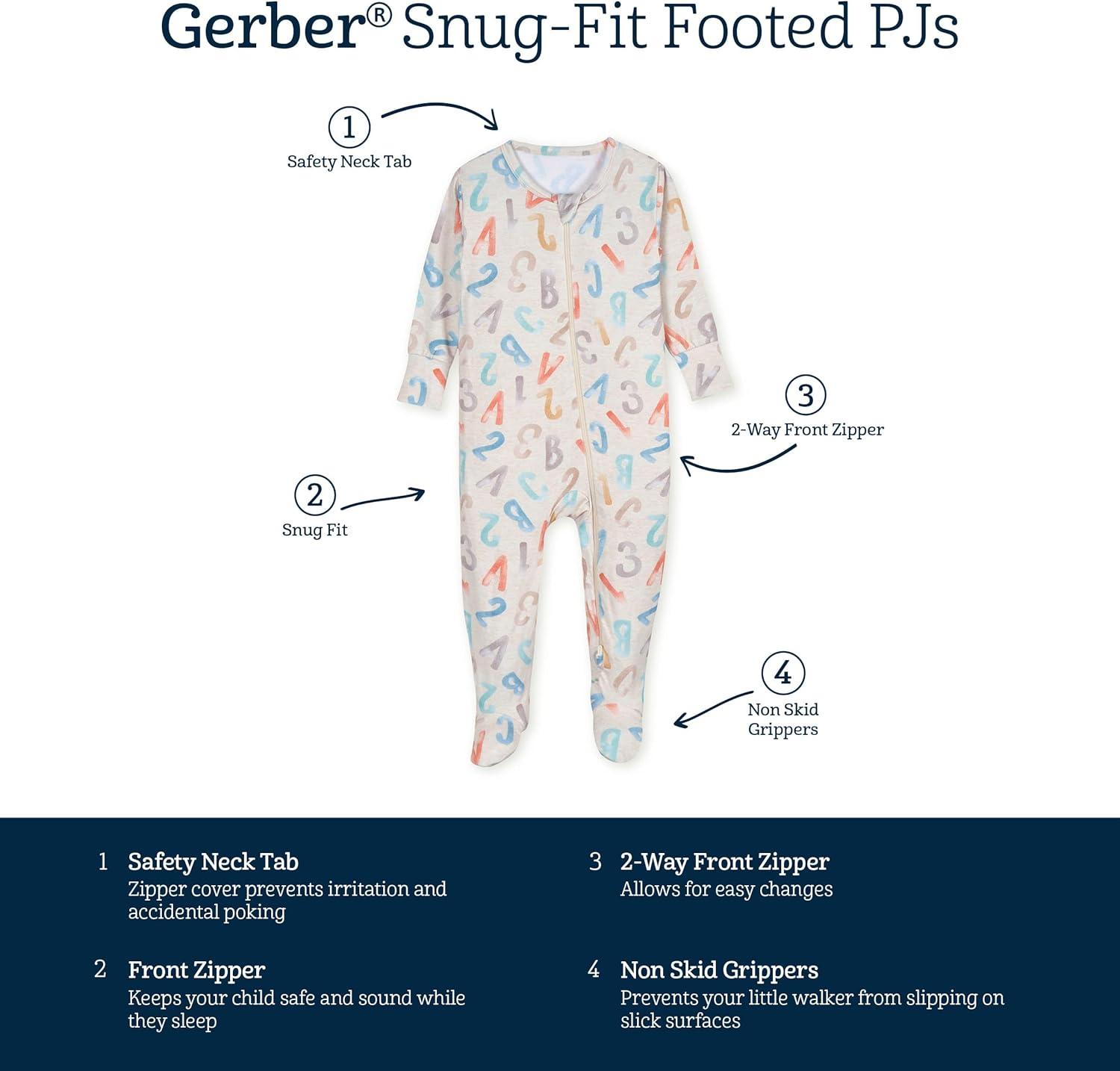 Gerber unisex-baby Toddler Buttery-soft Snug Fit Footed Pajamas With Viscose Made With Eucalyptus(Alphabet Soup)