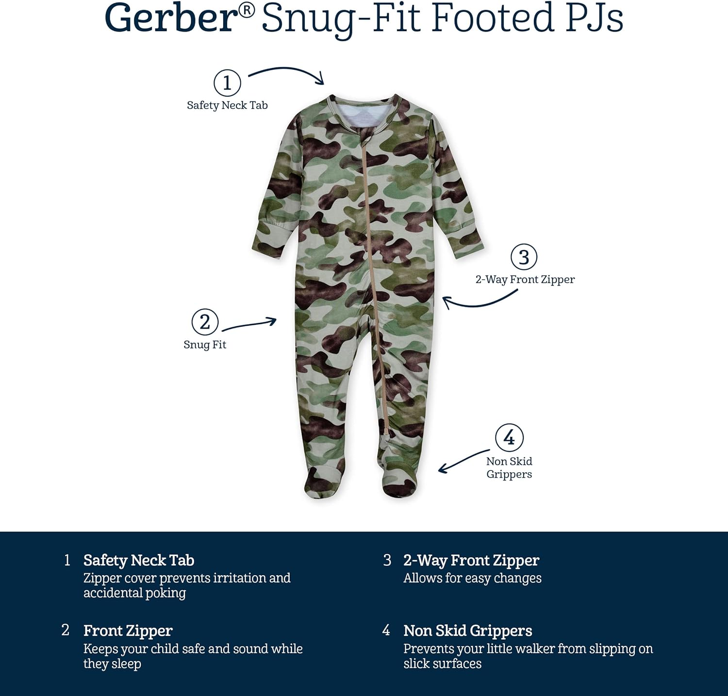 Gerber Unisex Baby Toddler Buttery-Soft Snug Fit Footed Pajamas with Viscose Made with Eucalyptus(Hide & Seek Camo)