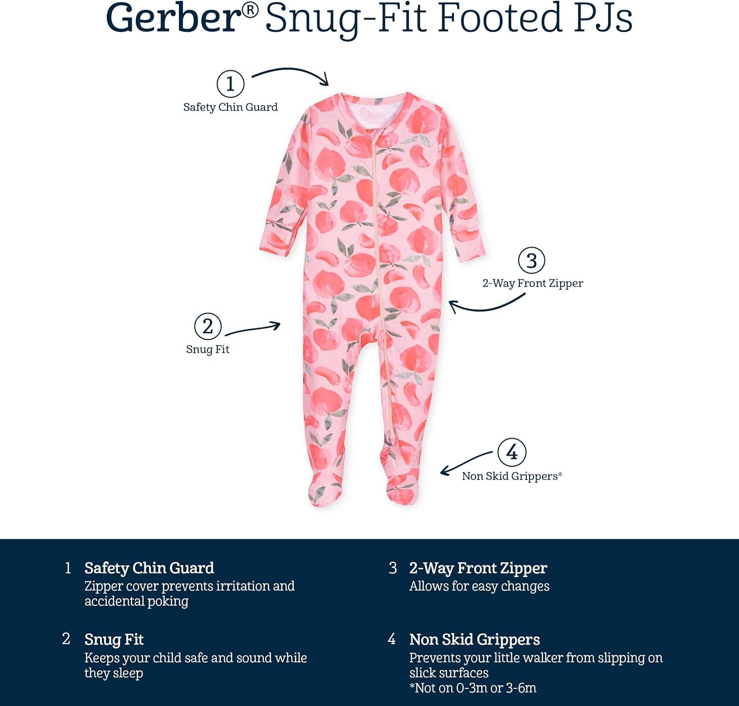 Gerber unisex-baby Toddler Buttery-soft Snug Fit Footed Pajamas With Viscose Made With Eucalyptus(Just Peachy)