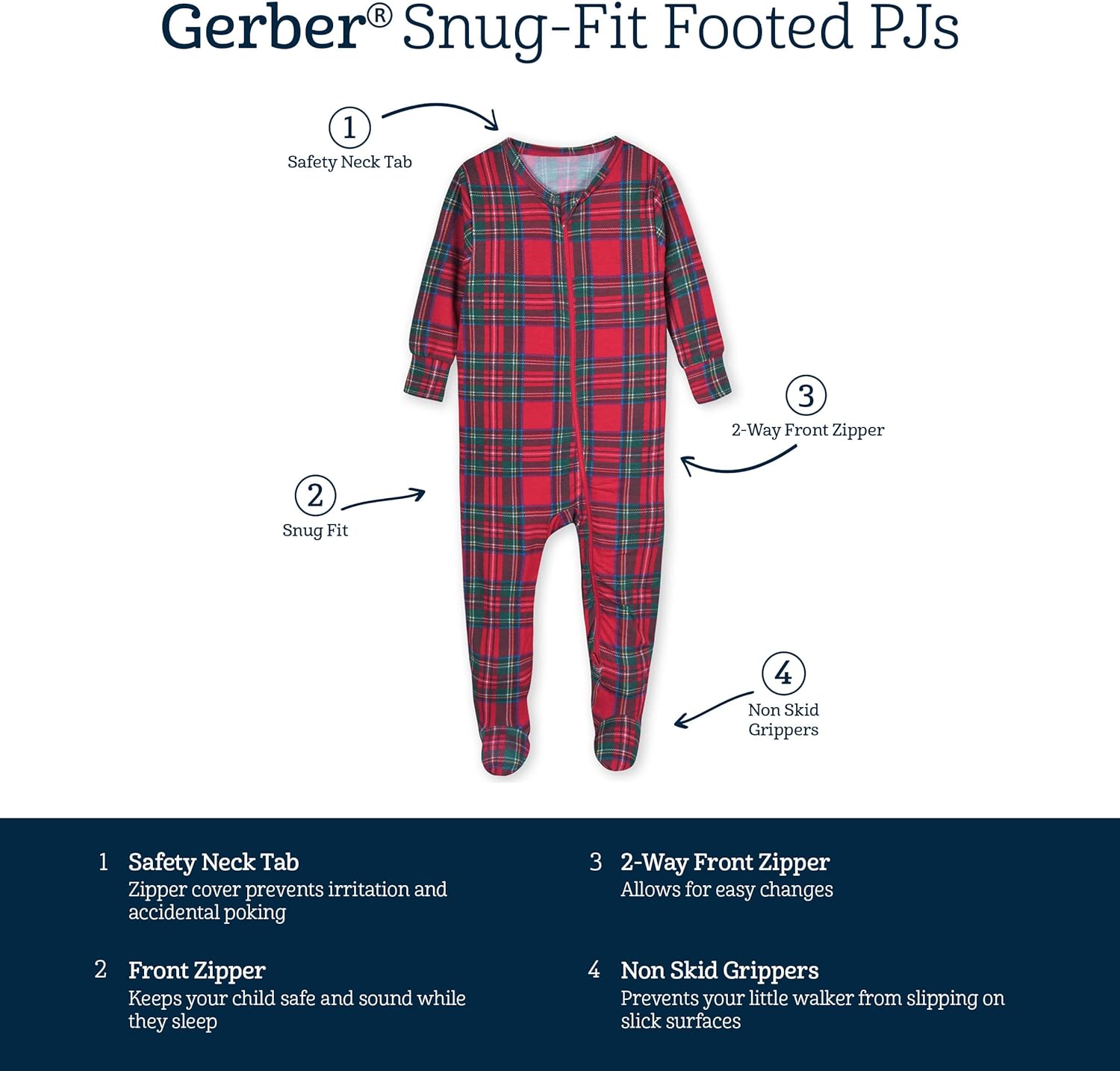 Gerber Unisex Baby Toddler Buttery-Soft Snug Fit Footed Pajamas with Viscose Made with Eucalyptus(Plaid About You)