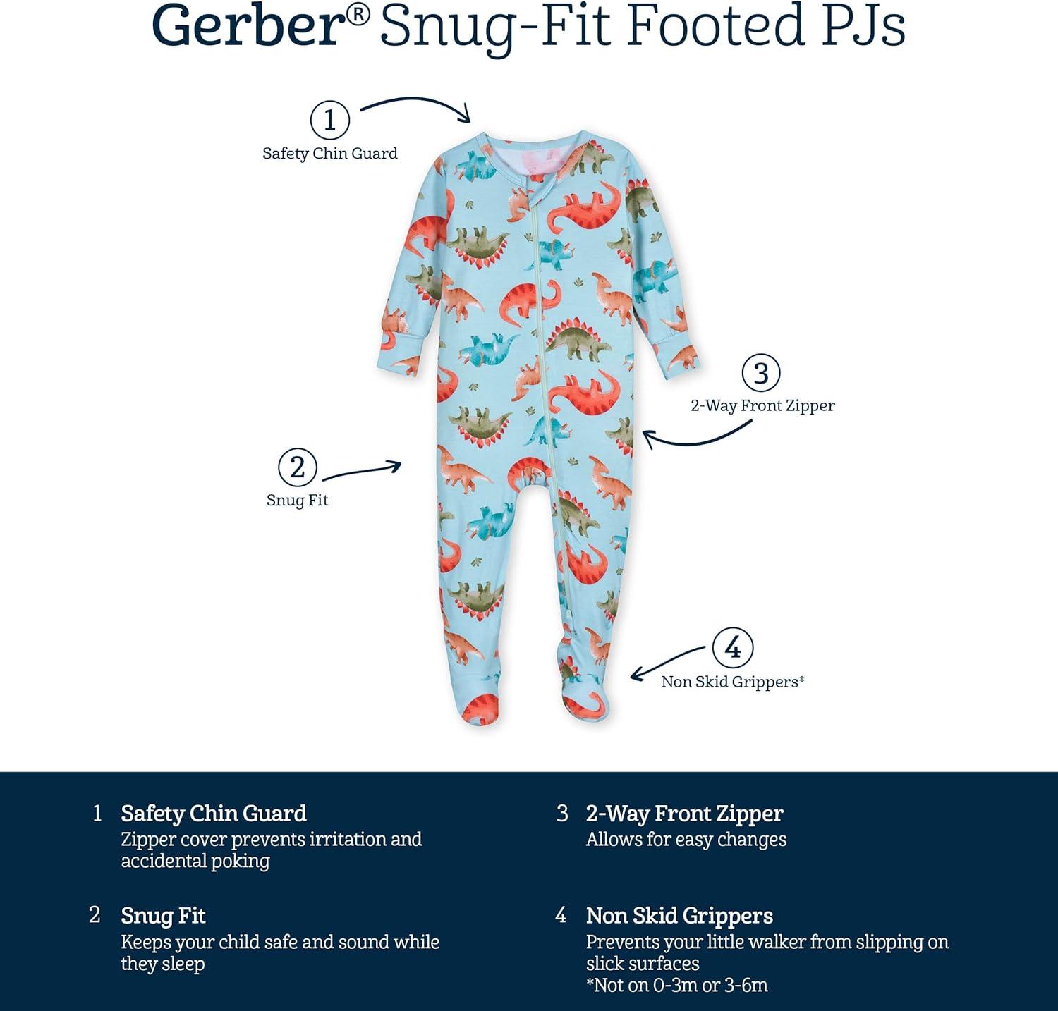 Gerber unisex-baby Toddler Buttery-soft Snug Fit Footed Pajamas With Viscose Made With Eucalyptus(Snugosaurous)