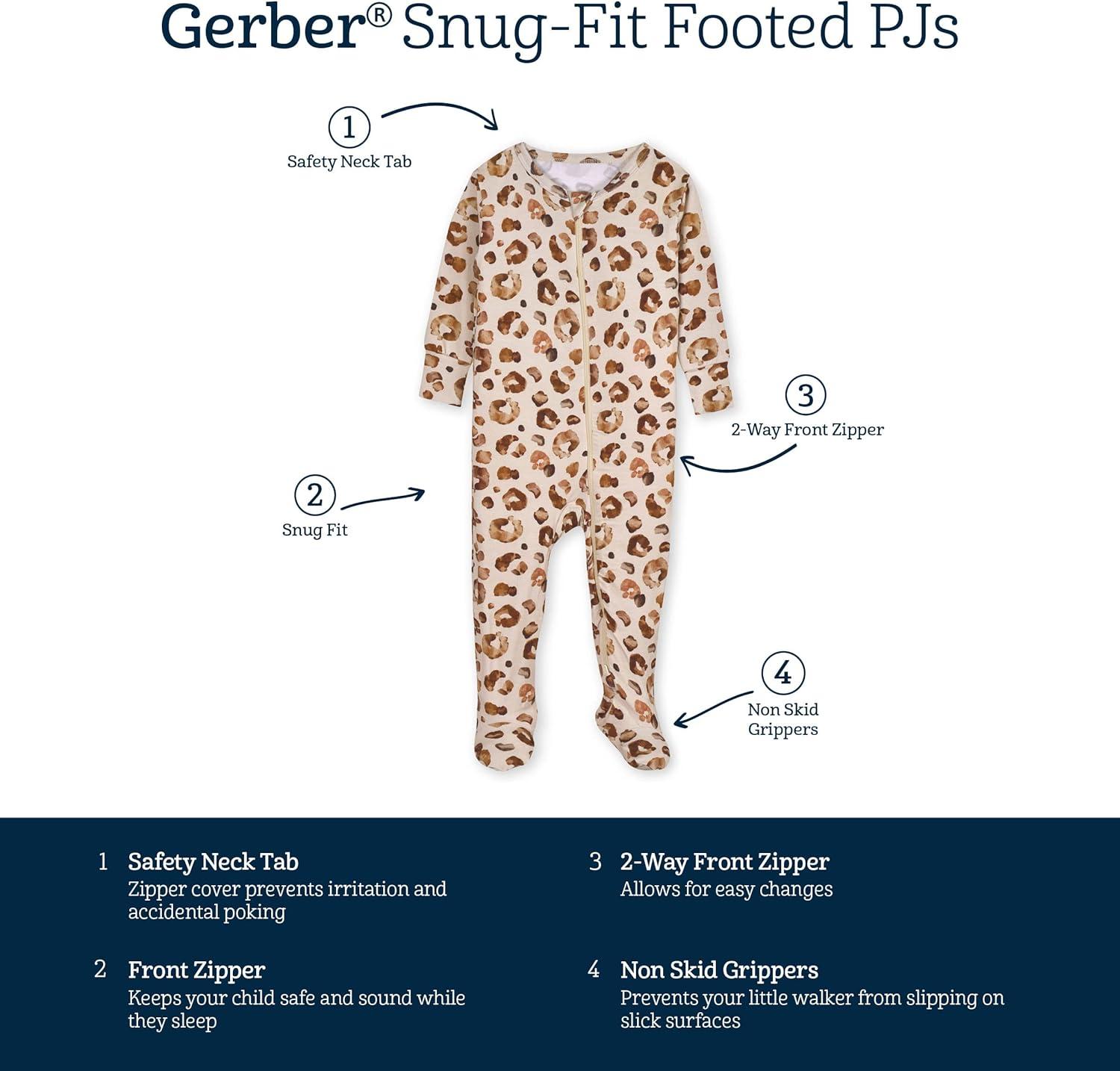 Gerber unisex-baby Toddler Buttery-soft Snug Fit Footed Pajamas With Viscose Made With Eucalyptus(Spotted Leopard)
