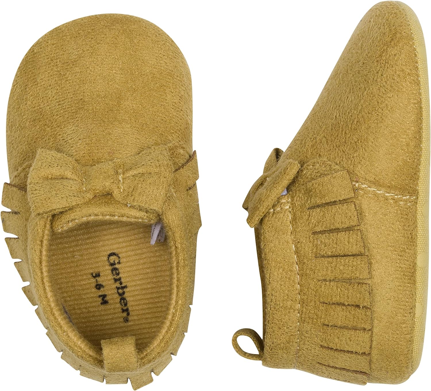 Gerber Unisex-Child Baby Moccasins Crib Shoes Newborn Infant Neutral Boys Girls(Taupe Fringe)