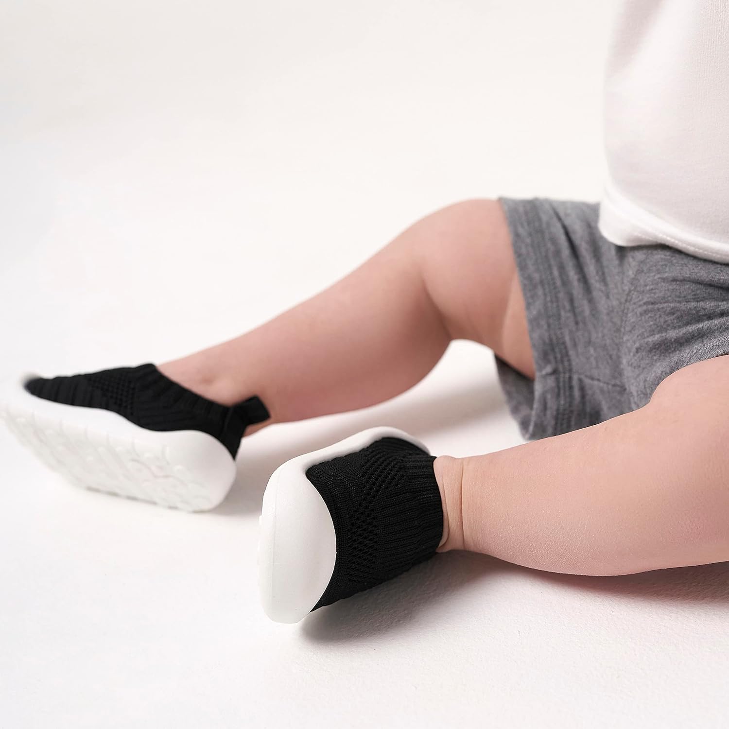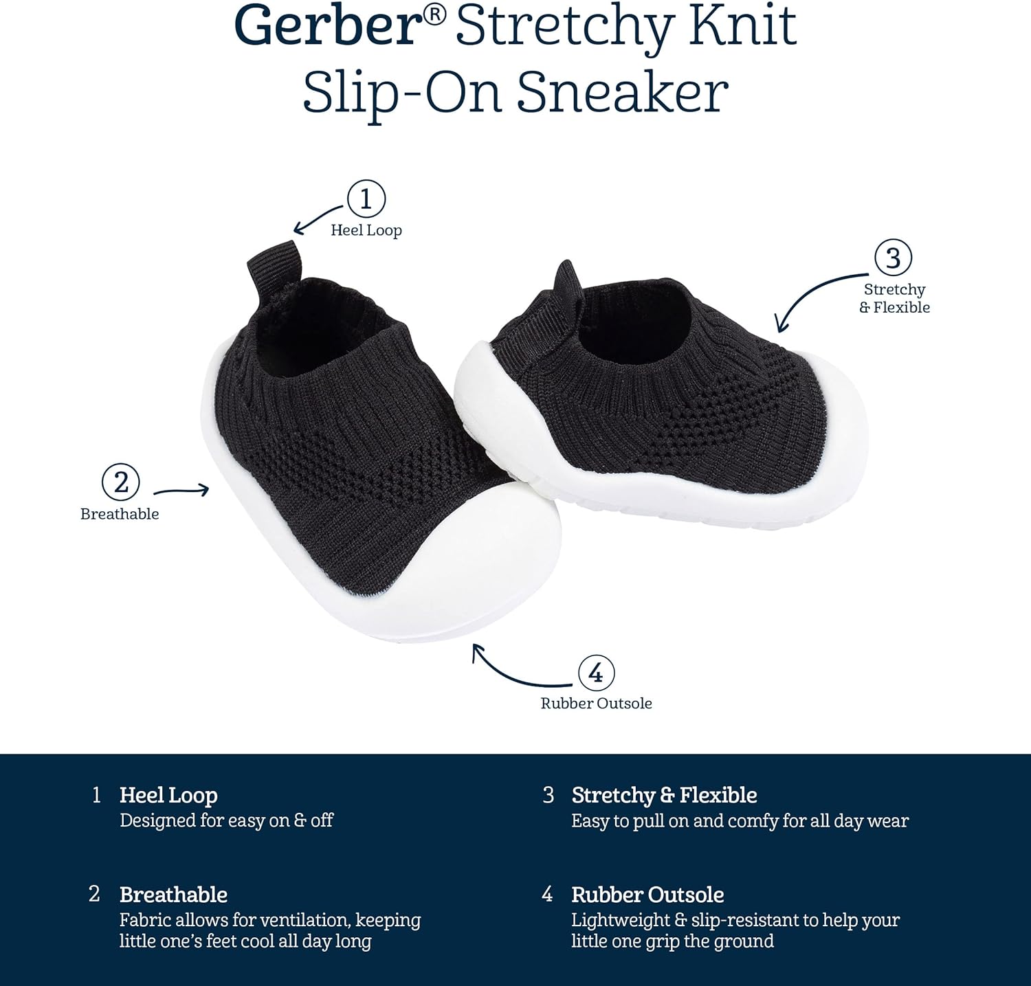 Gerber Unisex-Child Baby Toddler Boy and Girl Stretchy Knit Slip-on Sneaker Crib Shoe(Black)