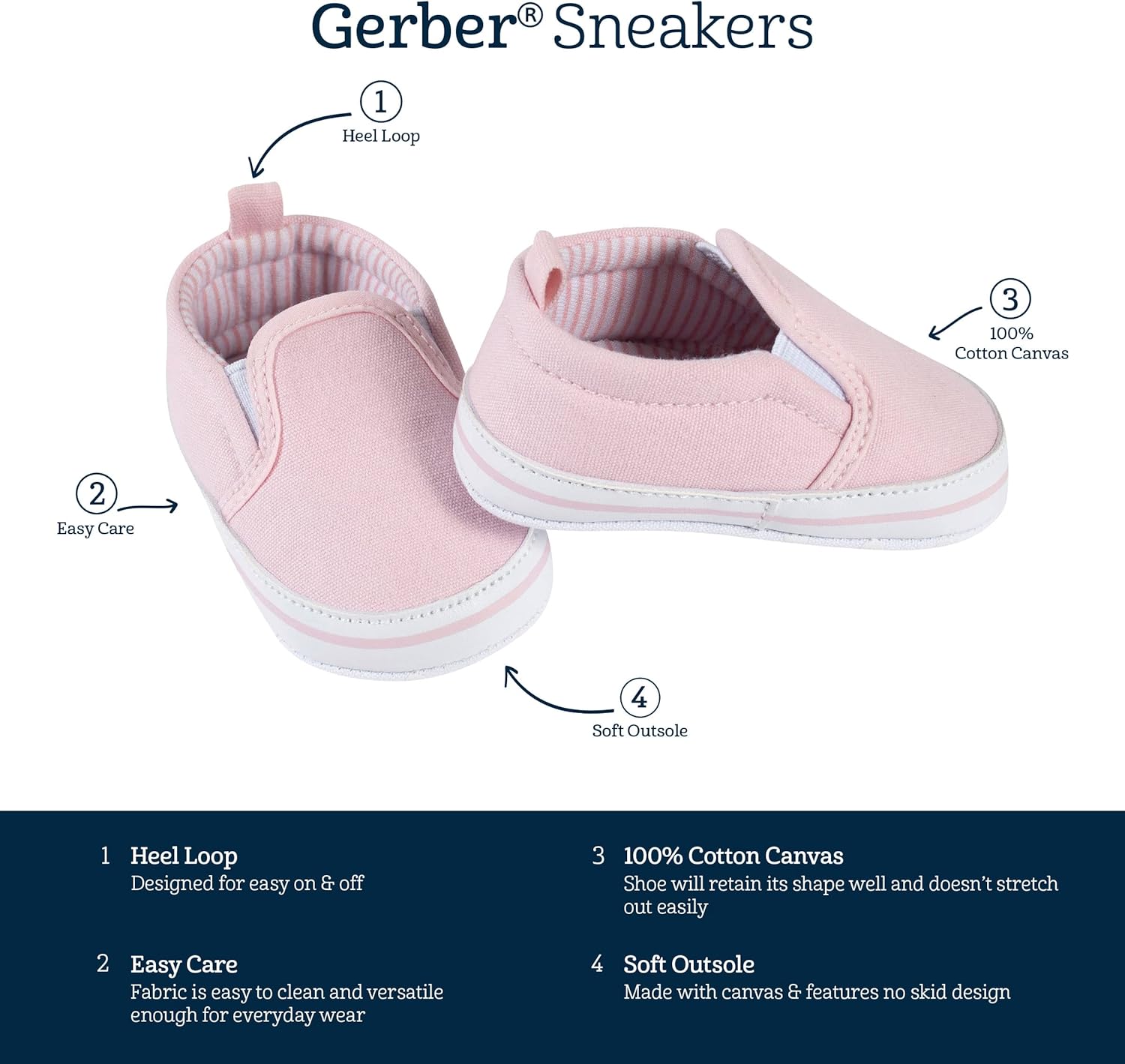 Gerber Unisex-Child Newborn Infant Toddler Boy and Girl Slip-on Sneaker Crib Shoe(Pink)
