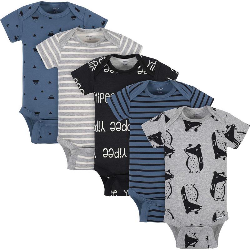 Grow by Gerber baby-girls 5-pack Short-sleeve Onesies Bodysuits(Black/White/Grey/Blue)