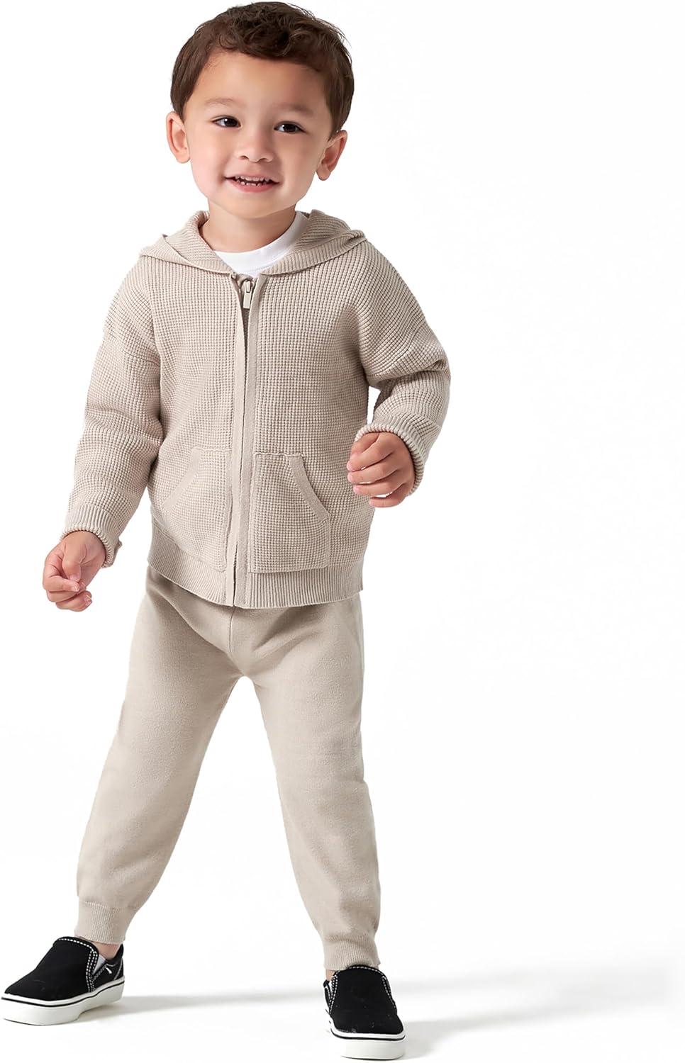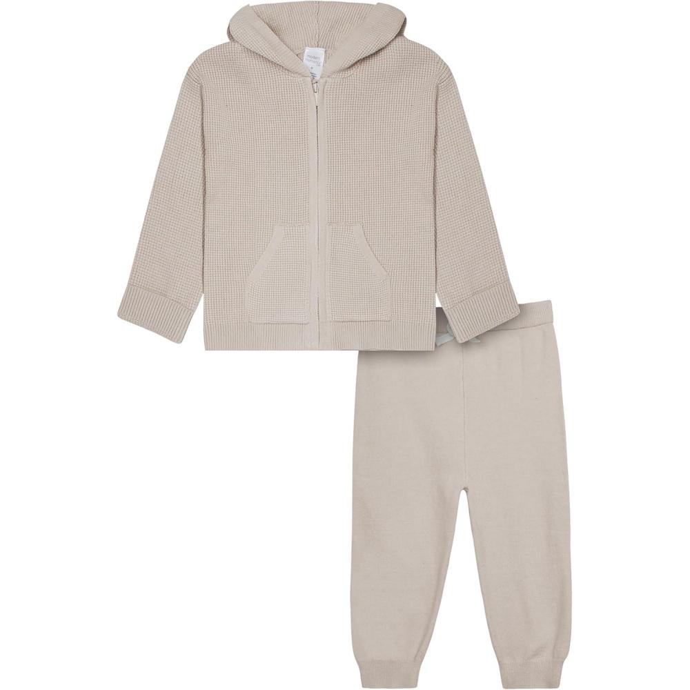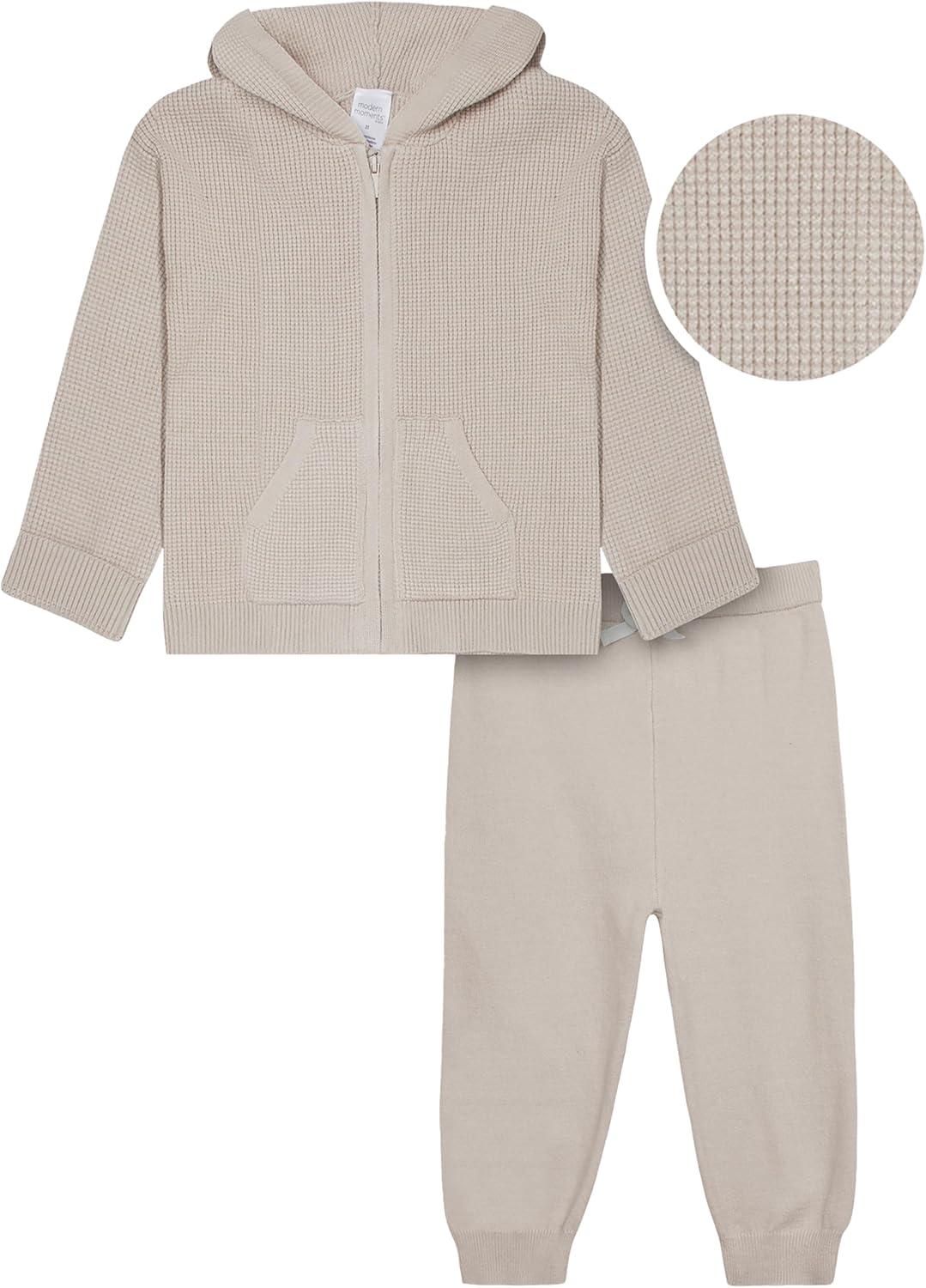 Modern Moments by Gerber Baby and Toddler Hooded Sweater Knit Jacket & Jogger(Taupe)