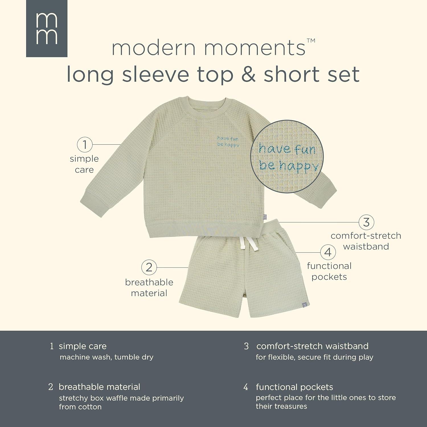 Get your baby or toddler ready for sunny days and those in-between seasonal moments with this adorable long sleeve shirt and shorts set! Made primarily from cotton with a hint of spandex, this outfit offers a naturally breathable and flexible fit. The elastic at the neckline, wrists, hem, and waistband ensures comfort and easy movement, perfect for all-day play. Layer the top or wear it on its own as the weather shifts—this set is as versatile as it is stylish!