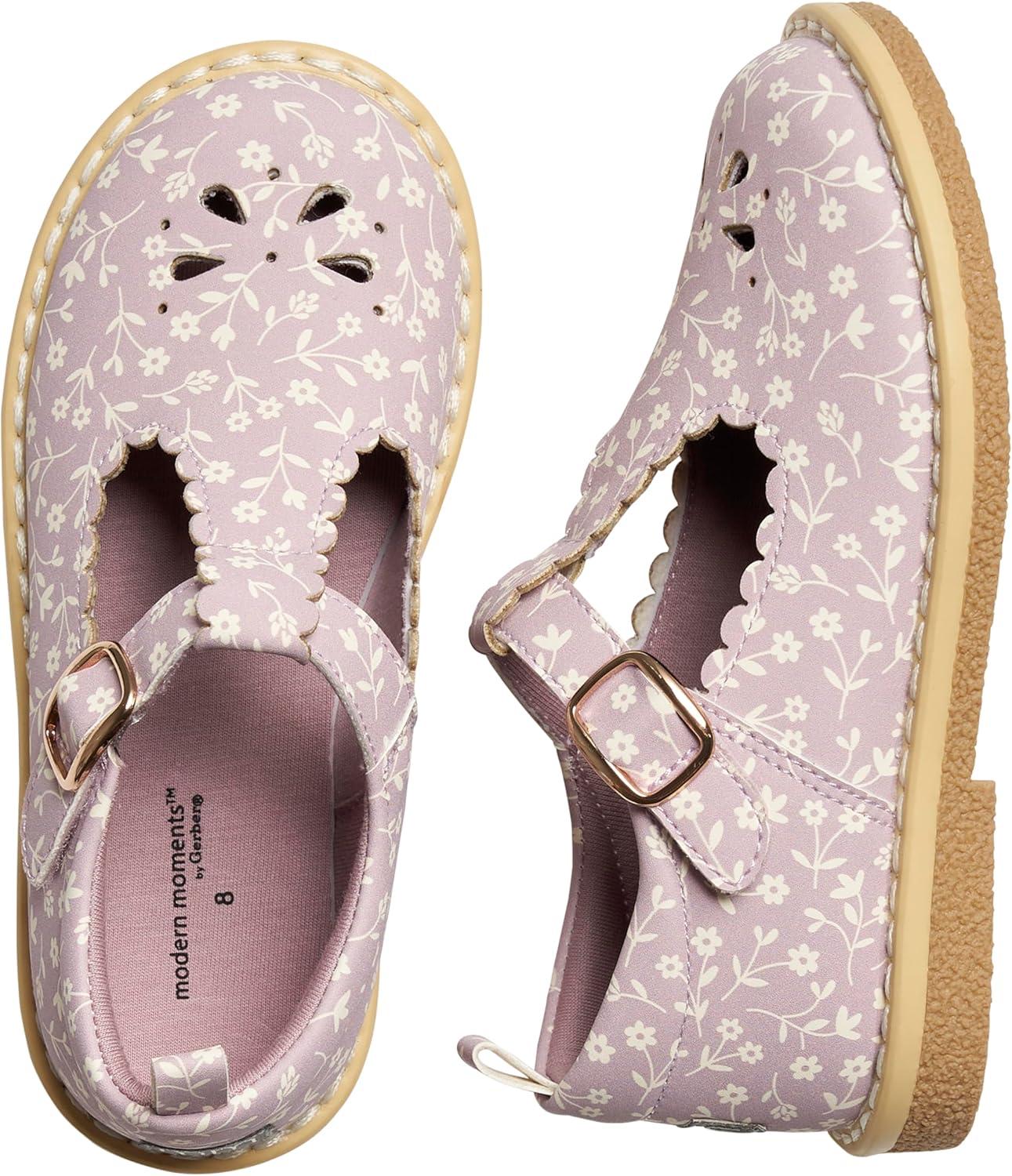Modern Moments by Gerber Baby-Girl’s Toddler T-Strap Mary Jane Flat(Light Lilac Floral)