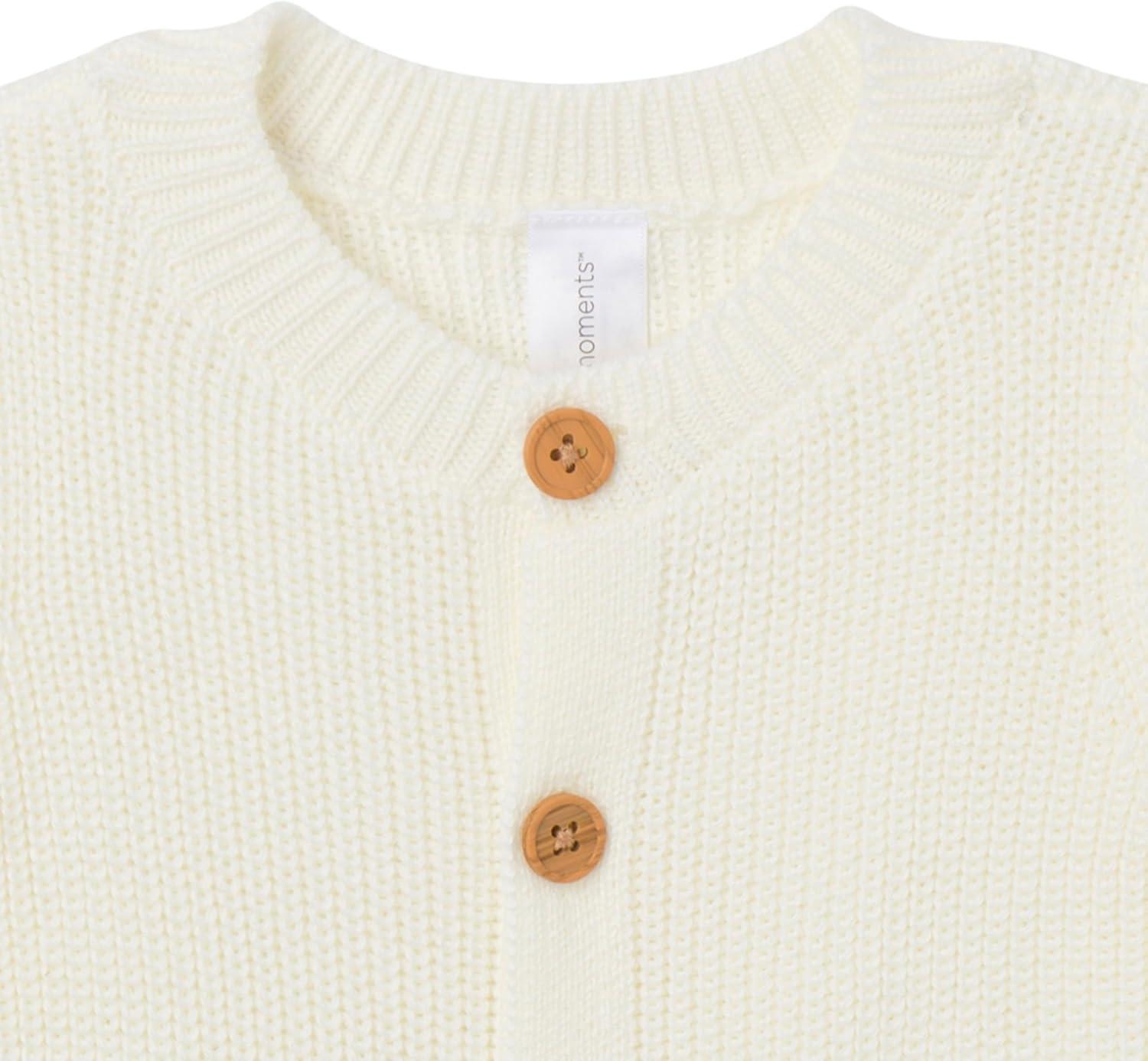Dress your little one in cozy cuteness with our baby romper and hat set! Made from thick, warm material with a gentle stretch, this ensemble is perfect for keeping your baby snug and happy. With hidden snaps at the inseam, dressing and diaper changes are quick and convenient, while comfort-stretch ribbing at the neckline, wrists, and ankles ensures a comfortable fit that moves with your baby. And when it's time for outdoor adventures, the matching hat adds an extra layer of warmth and style. Complete with faux wood buttons for a whimsical touch, this set is a delightful addition to your baby's wardrobe.