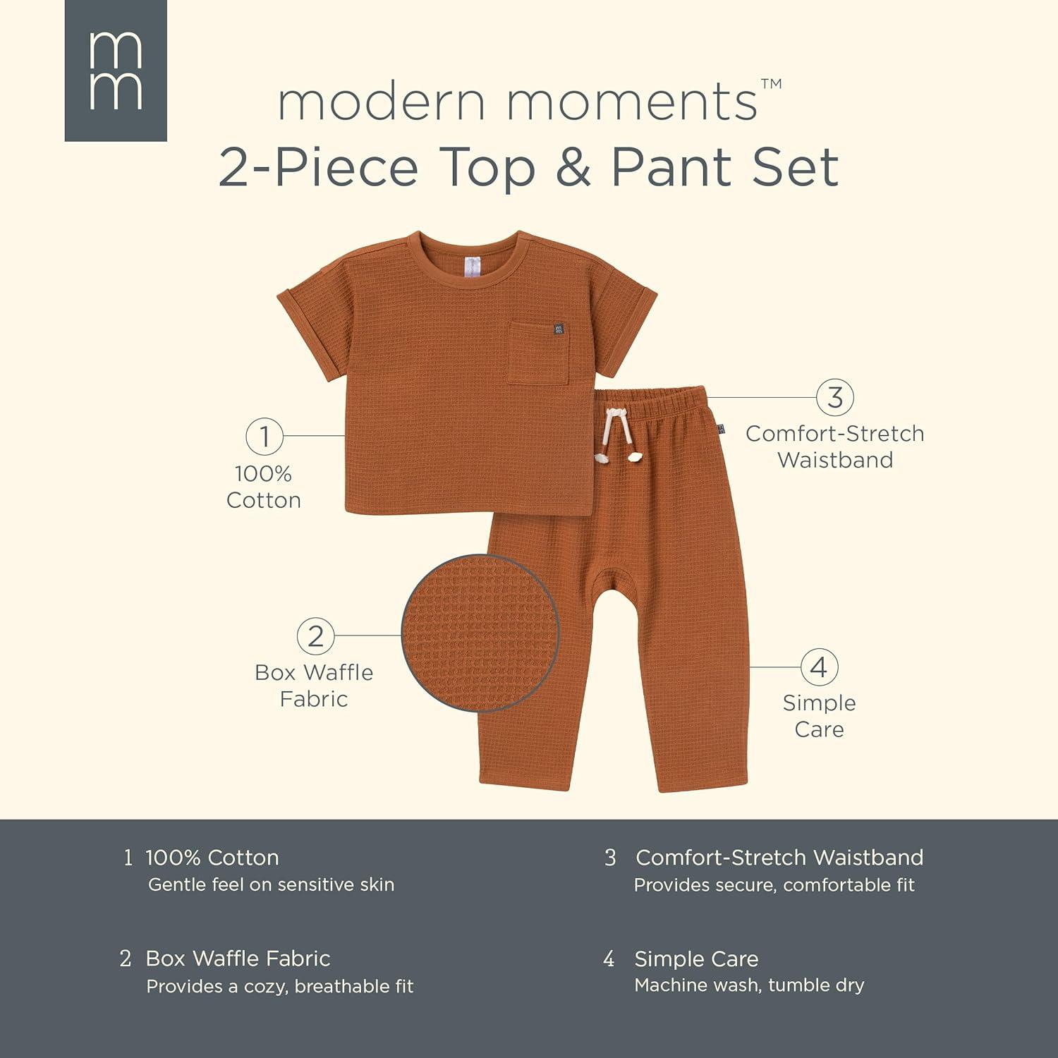 Modern Moments by Gerber Boys’ Baby and Toddler Honey Comb Sweater Knit Top and Pant Set(Medium Brown)