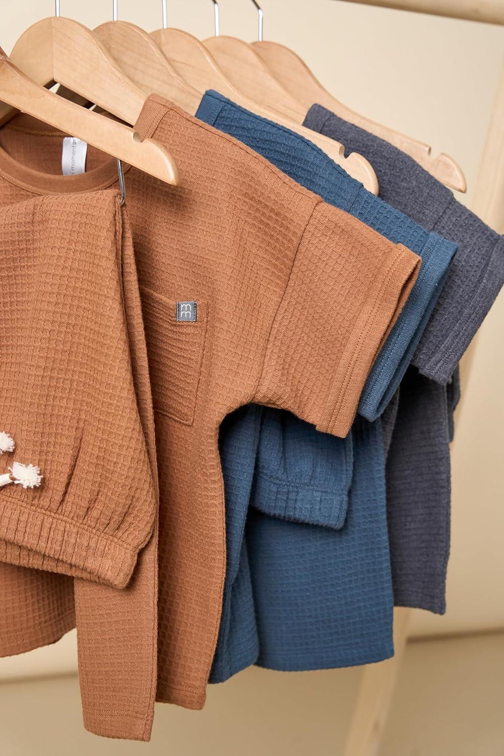 Prepare your little explorer for a day of fun with our toddler boy pants and shirt set, made from 100% cotton for a soft touch on sensitive skin. With a comfort-stretch waistband on the pants, this set provides a flexible fit that allows for easy movement. The box waffle fabric ensures a cozy and breathable feel, keeping your active toddler comfortable all day long. Whether it's playtime outside or a visit to the grandparents, this set is perfect for your energetic little one!